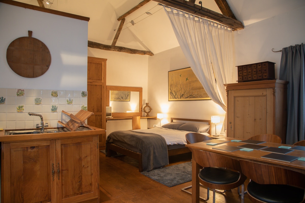 Basils Barn is situated on the grounds of a 17th century manor, surrounded by a picturesque 60 acre estate. The bedroom is directly attached to Basils stable, where there is a doorway in between the two spaces. In the paddocks we also have a herd of Highland cows, Hebridean sheep, horses, pigs, chickens and Norwegian Forrest cats. Our animals are mostly rescued and all of our animals are kept strictly as pets.