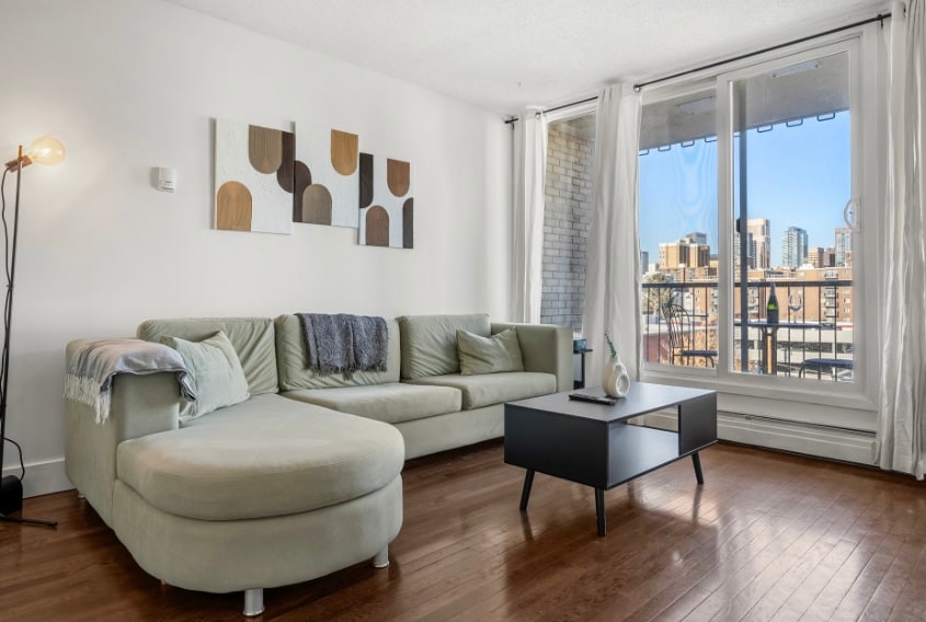 About this space This beautiful 1 bed and 1 den apartment is your home away from home. It offers all the convenience and comfort you need to make your trip memorable and comfortable Modern living space with floor to ceiling window that lets in plentiful and beautiful natural light, and offers amazing views of Downtown Calgary and Rocky Mountains in the distance Unbeatable location offers exceptional convenience to amenities and entertainment experiences. It's close to all public transportations.