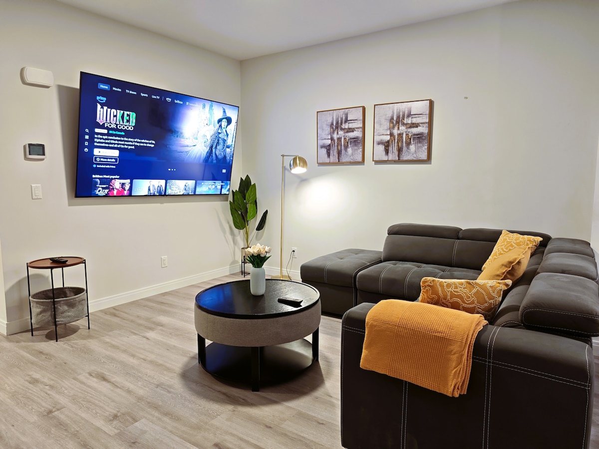 Welcome to your home away from home! 🏡 This bright and cozy 2-bedroom basement suite features large windows feel natural light 🌞 🛋️ What you’ll love: • Comfortable beds for a restful stay 💤 • Stylish wet bar for some drinks 🍷 • 55” TV with Netflix subscription 🎬 • Best 🥇 Fibre 2Gigabit Wi-Fi ⚡️ • Reserved parking right by the entrance 🚪 📍 Prime Location: Nestled in a quiet inner-city neighborhood 🌳 • 🚗 15 mins to YYC Airport • 🏙️ 12 mins to Downtown • 🚌 2 min to the bus stop