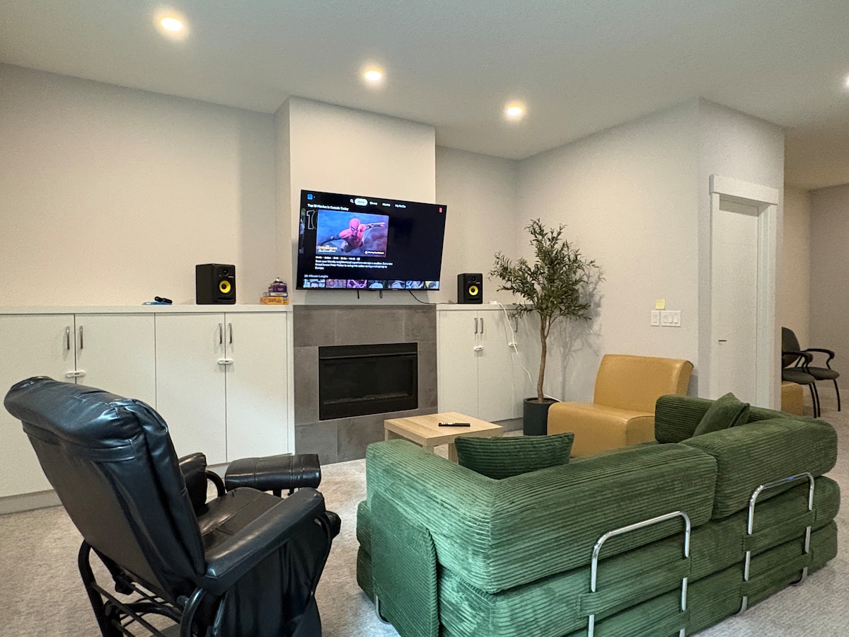 Welcome to your home away from home! 🏡 This bright and cozy 2-bedroom basement suite features large windows feel natural light 🌞 🛋️ What you’ll love: • Comfortable beds for a restful stay 💤 • Stylish wet bar for some drinks 🍷 • 55” TV with Netflix subscription 🎬 • Best 🥇 Fibre 2Gigabit Wi-Fi ⚡️ • Reserved parking right by the entrance 🚪 📍 Prime Location: Nestled in a quiet inner-city neighborhood 🌳 • 🚗 15 mins to YYC Airport • 🏙️ 12 mins to Downtown • 🚌 2 min to the bus stop