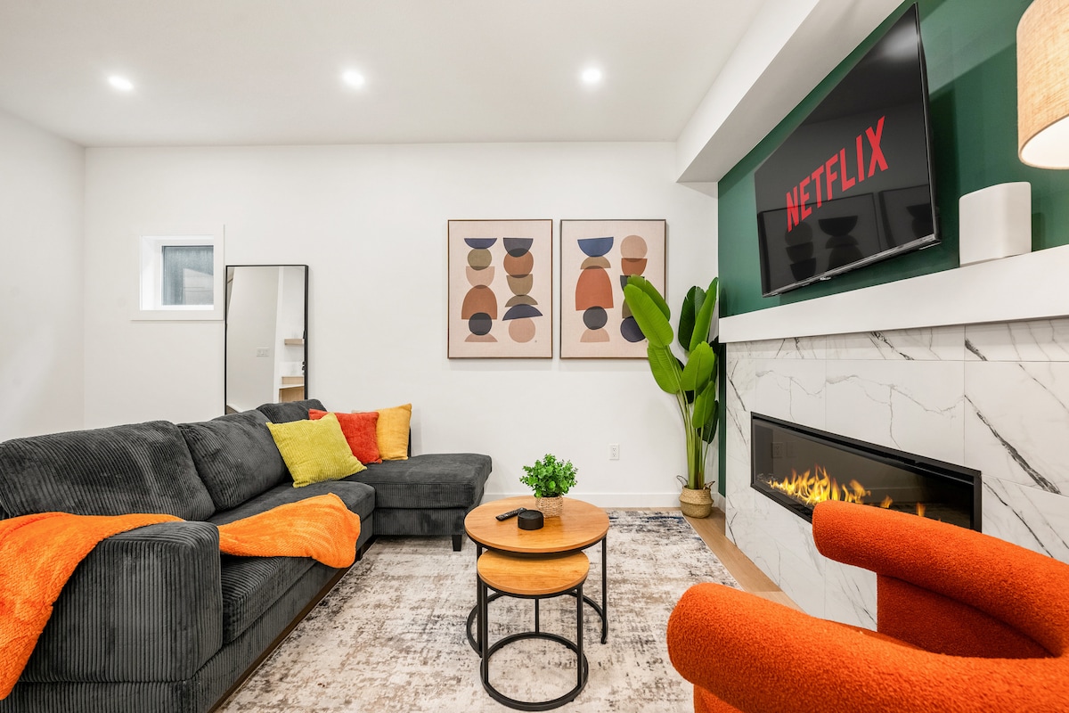 Air Conditioned! Enjoy easy access to everything from this centrally located and aesthetically pleasing home in the prestigious Marda Loop area! Empire boasts both form and function, with a chef's kitchen with Bosch Appliances and a media room with wet bar. The master suite has a King-Size Bed, soaker tub, and walk-in shower. Relax and Enjoy your Nespresso or complimentary wine by the fire on the curated patio! There's even a custom garage for your car. Come and experience Calgary in style.
