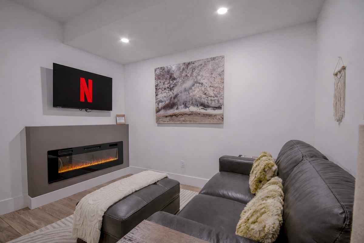 This spacious, clean & unique home is located in a quiet neighborhood near Calgary's top destinations. Perfect for short and long term stays. Big spacious bedrooms with a king bed and large TV in the living room are sure to impress. 3 Bedrooms plus a private den with wood-burning fireplace, balcony and pull-out full size bed. 1 king bed, 1 queen bed, 2 twin beds, 1 pull-out double bed, 1 Cot Projector TV with Amazon Firestick ❤️ Don’t forget to hit the “❤️” button so you can find me easily!
