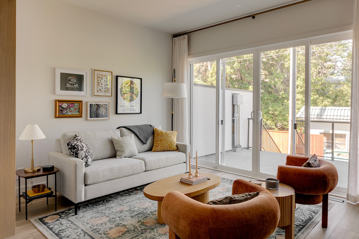 Be in the mountains in an hour! Walk out basement suite with private entry, plenty of street parking, in a quiet neighborhood 3 mins to shops & restaurants, perfect for couples, friends or family. AC for summer & in-floor heat in winter for total comfort. Well stocked kitchenette with convection toaster oven/air fryer & double induction burner with pots and frying pan. Plenty of seating in the living & dining room make this stylish place perfect for groups. Washer/dryer available upon request.