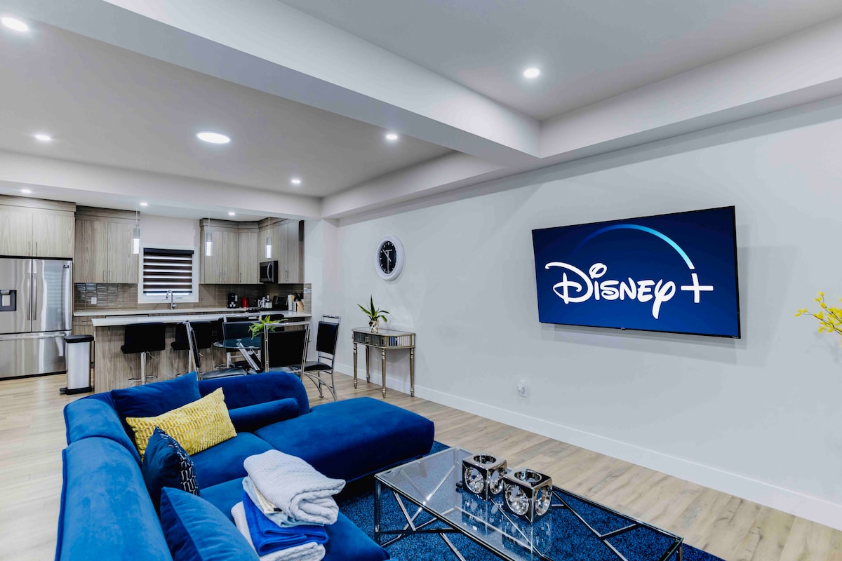 Welcome to this thoughtfully modeled unique entertainment themed basement suite located just minutes from the heart of Edmonton’s downtown. While this suite gives you the home away from home feel, it is perfect for letting loose and having some fun. It’s location is ideal for getting to many popular destinations throughout the city within minutes, such as a 5 minute drive to Rogers Place Ice District, 12 minutes to Whyte Avenue, and many more of Edmonton’s top rated attractions.