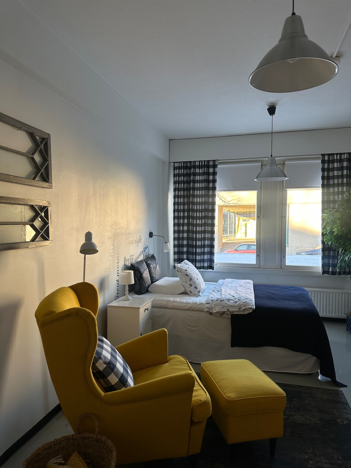 Idyllisessä Vanhassa Raumassa sijaitseva, valoisa ja viihtyisä studio joko pienelle perheelle, pariskunnalle tai ystävien viikonlopun viettoon. Parvella kaksi sänkyä, jotka saa parivuoteeksi ja alakerrassa vuodesohva. Kahvi, tee ja liinavaatteet pyyhkeineen kahdelle sisältyvät hintaan. Saapuessasi löydät pöydältä valmiina kartat ja esitteen nähtävyyksistä. Museot, viihtyisät kahvilat, idylliset kaupat ja tori sijaitsevat lyhyen kävelymatkan päässä.