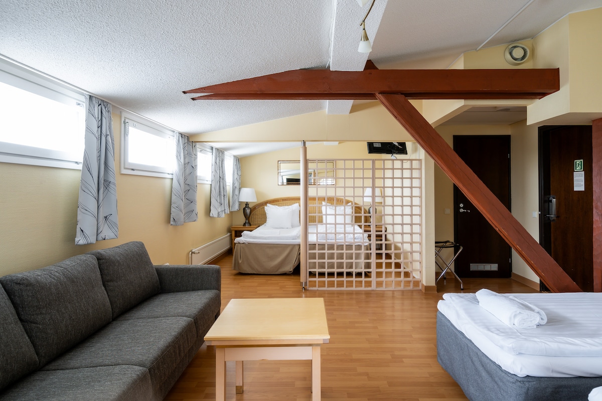 位于图尔库港的宽敞酒店房间,5张床