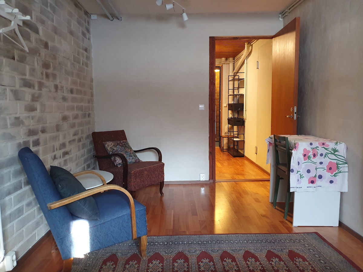 Unique possibility to enjoy Finnish 1970 vintage and design in the Old Town in Tammisaari. Seafarers and hatmakers have since 1880s enjoyed life on the property where an old stable and cabin were transformed into modern living in the 70s. Now fully renovated keeping the 70s vibe and furnished with Finnish design. The hosts look forward to share the closed cosy garden in the Old Town - you only have 100 meters to the ocean, the old church with its beautiful tower and the market place.