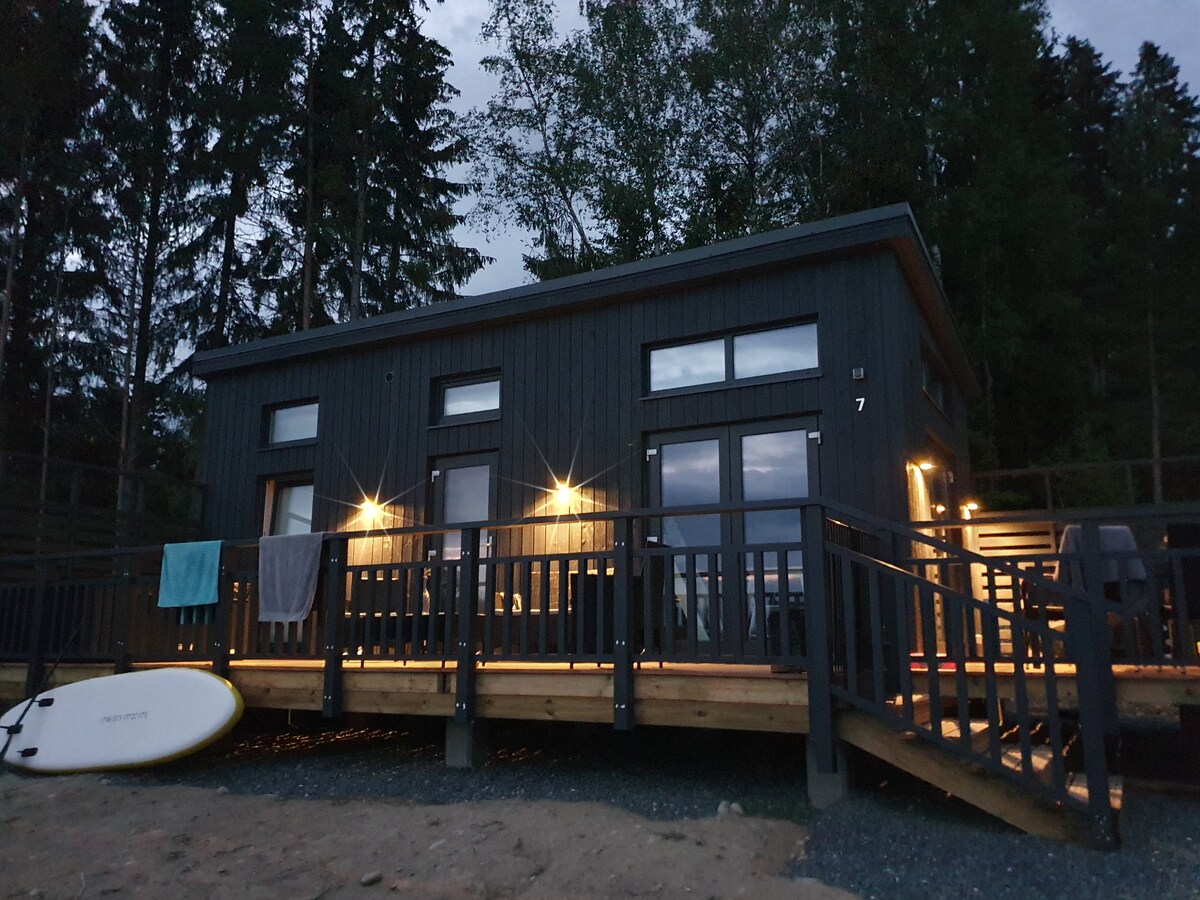 Modern tiny cabin with a great sauna and hot tub on the patio. Accommodates nicely four persons in comfortable beds. Direct access to sea and a small boat for your use. In case you want to fish, you can rent fishing gear and even a fishing guide from the host. Using the hot tub has to be agreed and paid separately at the time of reservation (100€). Tub will be filled and it will be in your use for the entire stay. Cleaning fee (50€) includes sheets and towels for four persons.