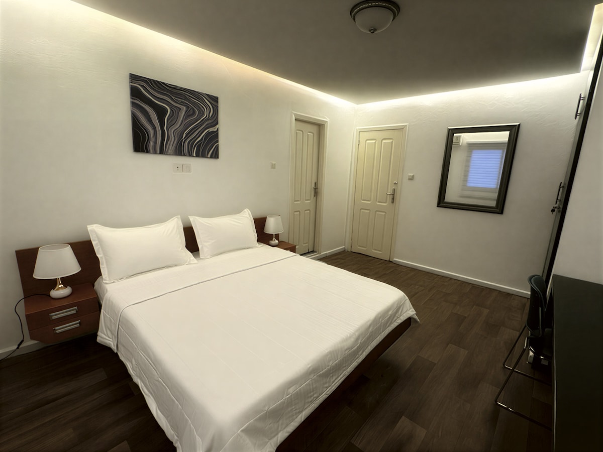 Experience luxury living in this top-notch apartment, perfectly located for convenience and accessibility. Just minutes away from essential spots, this serene and secure residential area offers a peaceful environment. Enjoy the convenience of modern amenities like high-speed internet, air conditioning in every room, and a fully-equipped kitchen with a fridge, microwave, and water boiler. This is more than just a place to stay it’s a lifestyle. When you choose this apartment, you’re investing in.