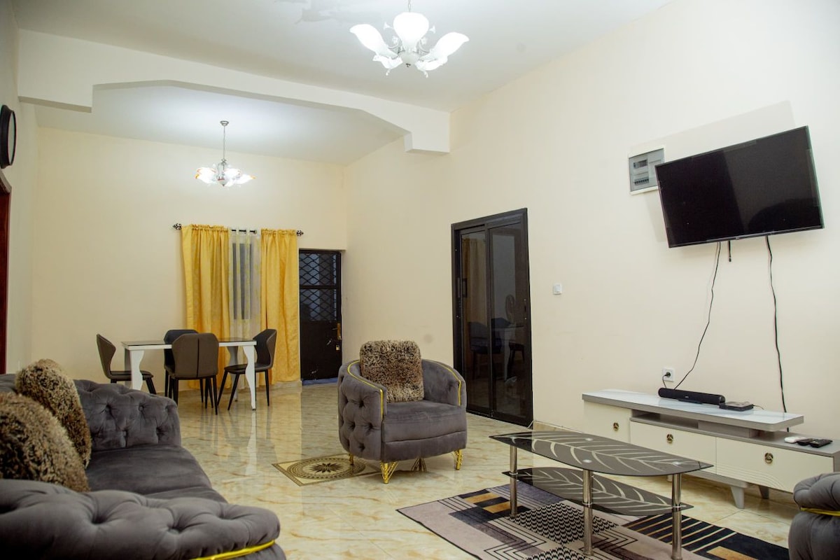Relax and enjoy Douala in this quiet, elegant apartment: - Warm and elegant living room - Orthopedic mattress - Unlimited WiFi connection - Netflix and local channels - Hot water in all rooms - Fully equipped modern kitchen - 5 minutes from banks and supermarkets - Free on-site parking - 7/24 security guard - Maid service available - Air conditioning available throughout the house - Garden balcony with swing and city view - Prepaid meter for electricity
