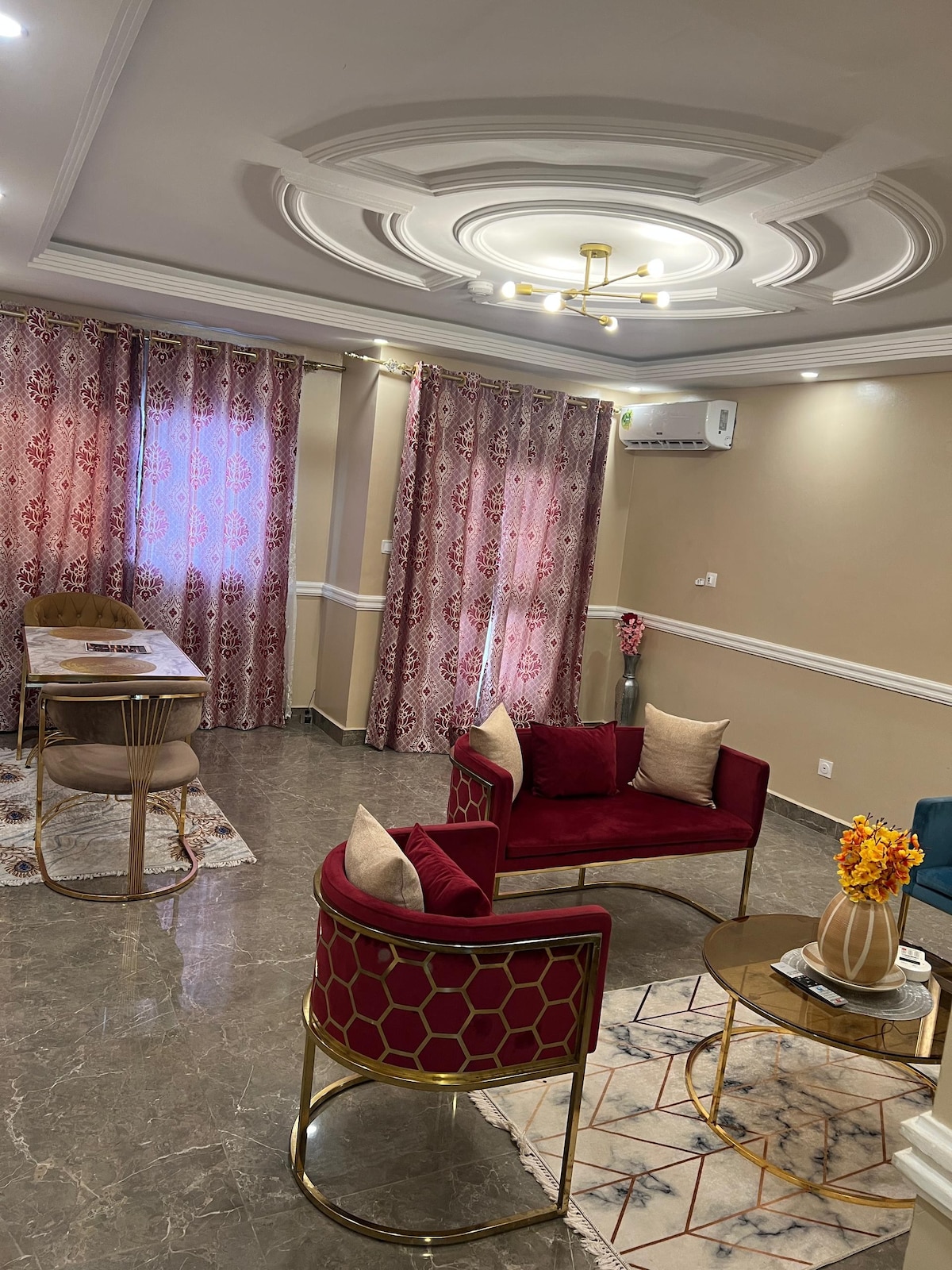 Séjournez dans nos appartements et studios meublés, confortables et modernes. Nos atouts pour un séjour agréable et sécurisé : Parking sécurisé Forage & groupe électrogène Wifi haut débit (Starlink) Netflix Visiophone & serrures intelligentes Vidéosurveillance & gardiennage 24/7 Navette pour vos déplacements Bar/restaurant sur place Terrasse pour vos moments de détente ou événements Blanchisserie a votre service Vivez une expérience pratique, sûre et mémorable !