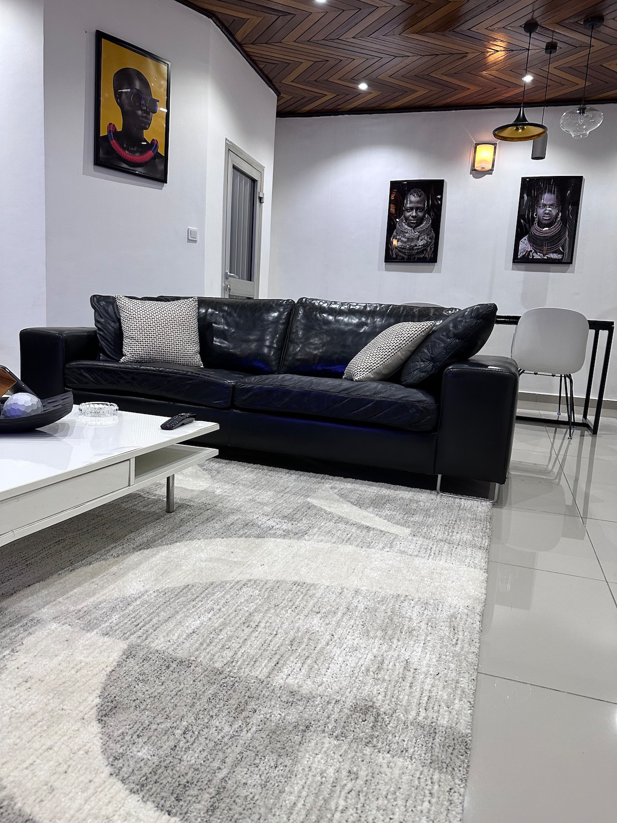 Appartement meublé de deux chambres situé à Makepe, Douala, en bordure de route. Complètement équipé, il est idéal pour les cours et longs séjours. Équipé de deux balcons, internet illimité haut débit (fibre optique), Canal Sat, une Smart TV avec Netflix, Amazone Prime et YouTube intégrés, sécurité 24/7, caméras de surveillance dans l’immeuble, parking gratuit, ballon d’eau chaude, machine à laver, cuisine équipée, climatiseurs dans toutes les pièces, deux ventilateurs, groupe électrogène.