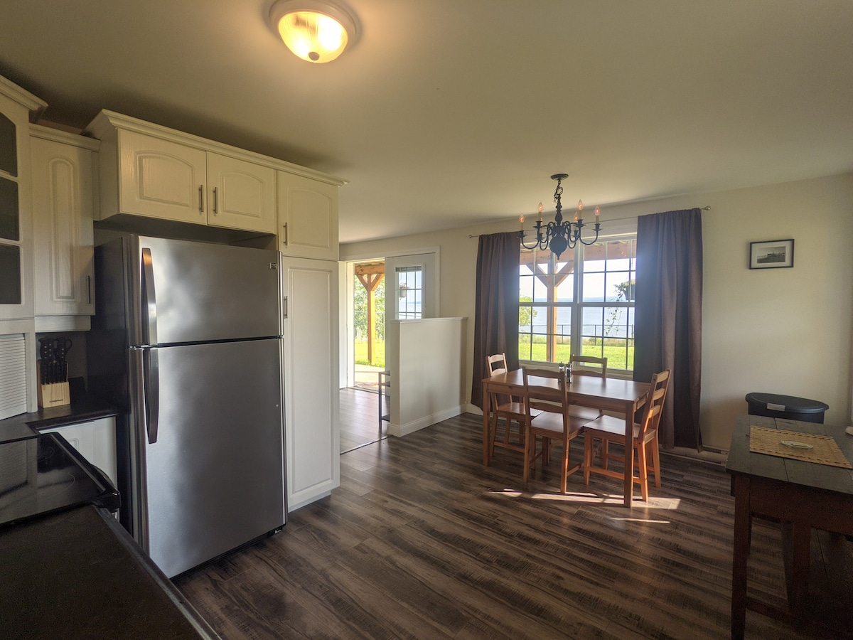 Enjoy the beautiful St. Croix River on this historically unique property. This two bedroom/two bathroom oceanfront apartment is ready for your next trip. Pet friendly with lovely fenced in backyard and steps to the beach from your livingroom door. 5 minute drive to gorgeous St Andrews by the Sea, 15 minutes to St Stephen and under an hour to Saint John NB. The Airbnb is perfectly placed with a view of the water to watch the amazing 25 foot tides as close as you can get.