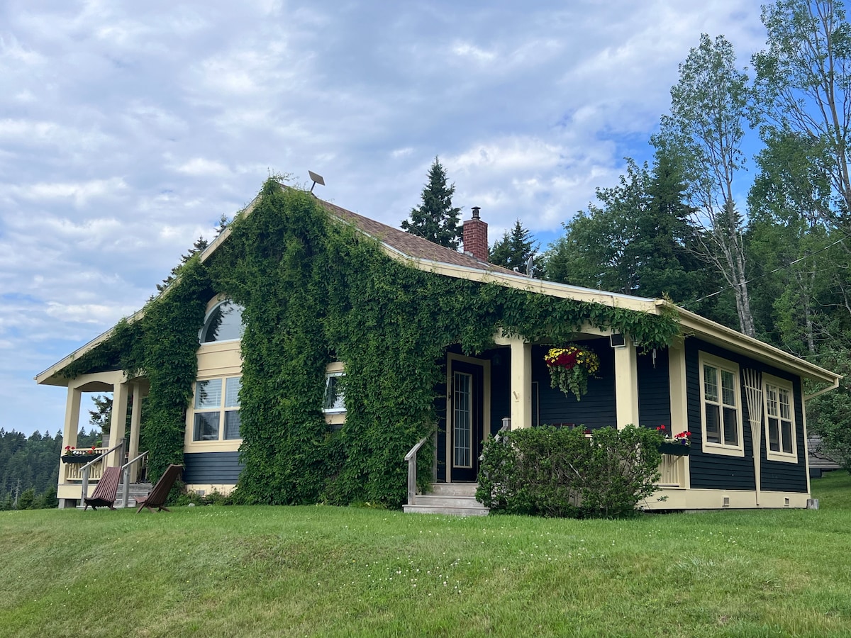 Dog-friendly Woodhaven is on the shore of Oak Bay between the St. Andrews and St. Stephen. The 1600 square foot Guest House has an open concept kitchen-dining-living room with gas fireplace; deck with hot tub, barbecue, dining table facing the water; two bedrooms with a king bed in one, and twin beds in the other; three-piece bathroom also has a washer-dryer; fenced yard for pets; canoe and kayak available; keyless entry; wheel-chair accessible.