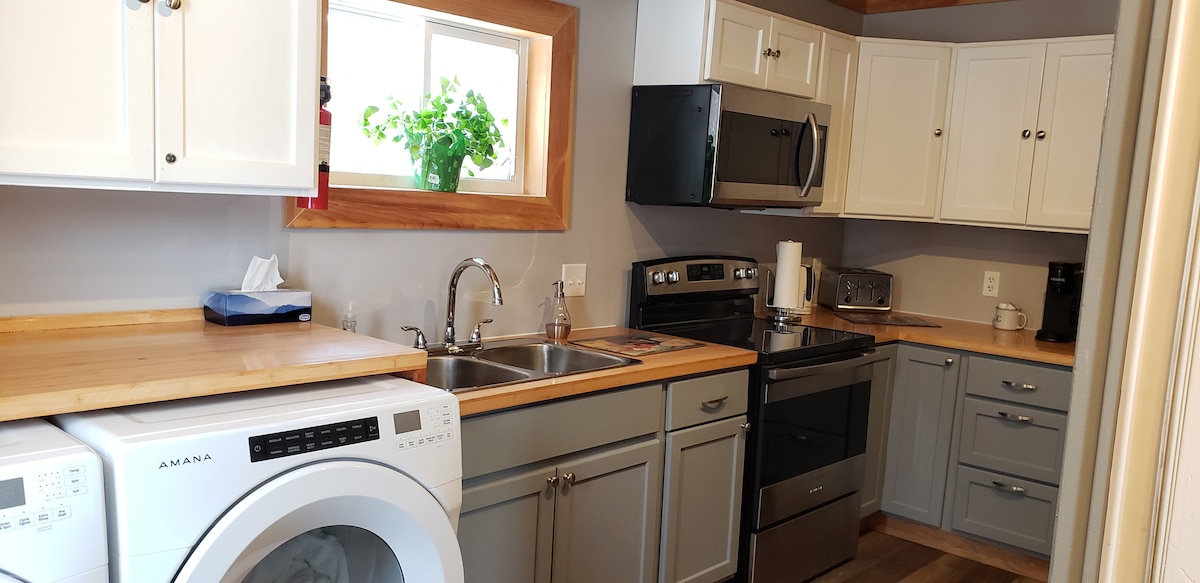 This private newly renovated suite is perfect for 1-2 people looking to stay in the pretty seaside town of Saint Andrews. Situated away from the street, with ample parking, this suite has comfortable modern furnishings, a fully equipped kitchen and private bathroom, within a short walking distance to downtown Saint Andrews and its many amenities including restaurants, shopping, gardens, museums, walking routes, nature reserves, beaches as well as whaling and outdoor excursions. Come and stay!