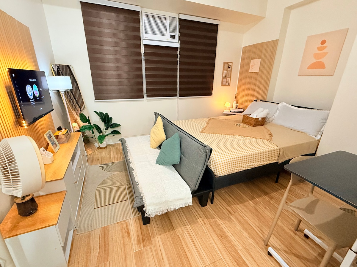 ✅ One of the cleanest Airbnb units in Holland Park! Unwind in a cozy 24 sqm studio with a queen bed, sofa bed, fast Wi-Fi, 50” TV with Apple TV (Netflix, HBO, Prime & more), plus free gym access and swimming pool (₱200/day). Perfect for solo travelers, couples, small families, or business guests. 🎁 Enjoy fresh towels and a welcome kit (toothbrush, toothpaste, soap, shampoo) – our way of saying thank you!
