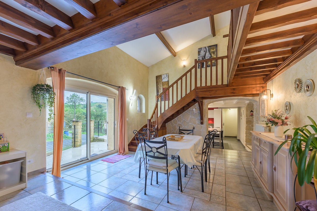 Duplex de 30 m2, mitoyen dans corps de ferme rénovée. Au calme dans la campagne des Monts du Lyonnais, à 45km de Lyon, 35km de St Etienne. Terrasse extérieure privée dans cour partagée, cuisine aménagée, salle d'eau, à l'étage 1 chambre fermée, la mezzanine avec 1 lit de repos, parking. A proximité piscine, cinéma, musée du Chapeau, musée des métiers, villages des Plus Beaux Détours de France à 2km, chemins de randonnée balisés, GR, balades en famille dans la campagne verdoyante.