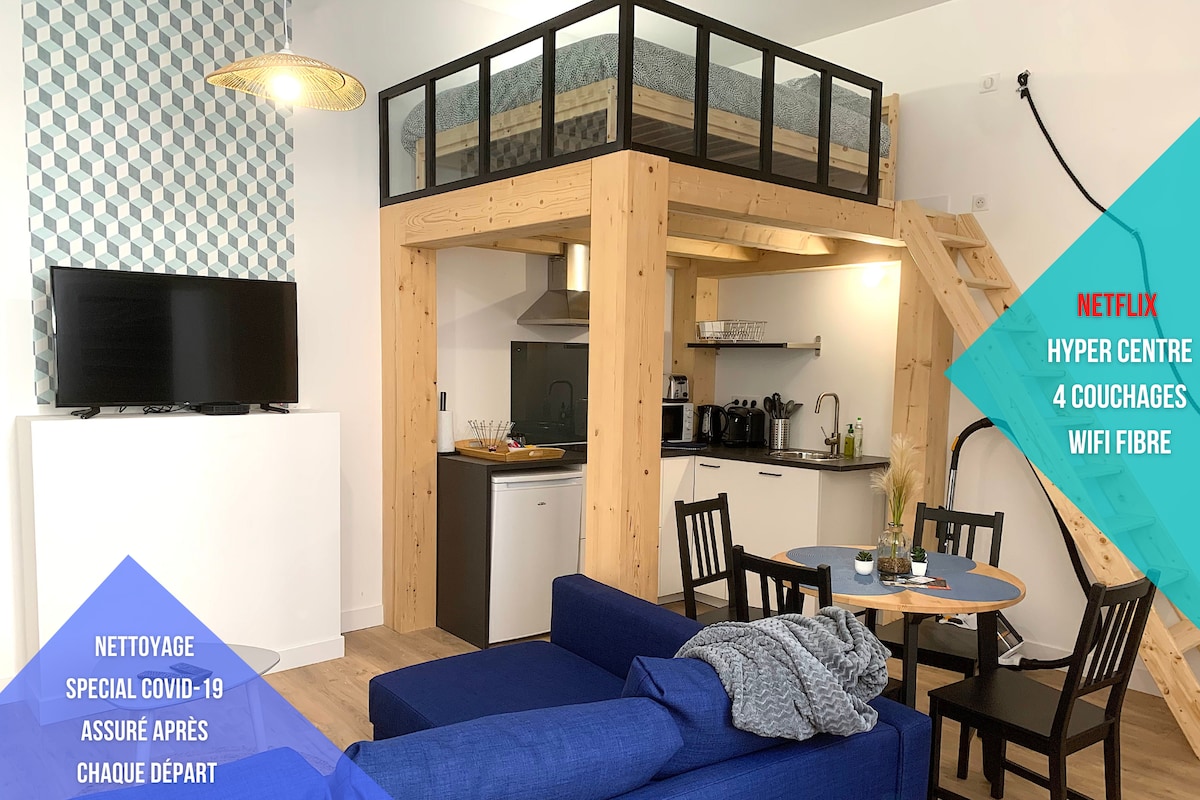T2 refait en 2022, très bien équipé au cœur d’Angoulême, sur les lieux de tournage du dernier film de Wes Anderson! Emplacement calme à 400m de l’hôtel de ville (tous commerces et évènements, BD, festival du film, circuit des remparts..) Linge de maison, café, thé inclus! -Lit parapluie disponible -Emplacement vélo gratuit