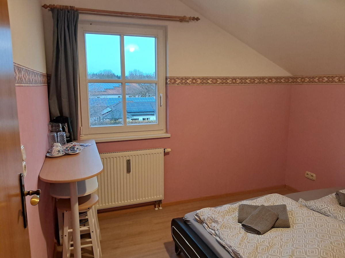 Sonnige Ferienwohnung in ruhiger Lage, mit Balkon und herrlichem Ausblick nach allen Seiten. Die Ferienwohnung "Weitblick" befindet sich im 2. Stock mit einem separaten Eingang der über eine Aussentreppe erreicht werden kann. Oedenberg liegt mitten im landschaftlich reizvollen Inn-Hügelland mit seinen vielen Rad- und Wanderwegen. Entfernungen: 10 Min. Wasserburg am Inn 30 Min. Rosenheim 35 Min. Messe München 45 Min. Flughafen München 40 Min. Chiemsee - 60 Min bis zu den Bergen 90 Min. Salzburg