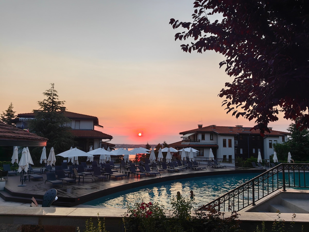 Dear guests, We offer you a stay at our cozy, comfortable and fully equipped, one bedroom apartment at the "Sunny Island" complex in Chernomorets by Sozopol. Everything for some quality time with your family or friends is provided - relax on the balcony or at the swimming pool, take a short walk to the romantic beach just 200 m away, play with the kids at some of the playgrounds around, visit Chernomorets, Sozopol, Burgas... There are so many options for your pleasant stay!