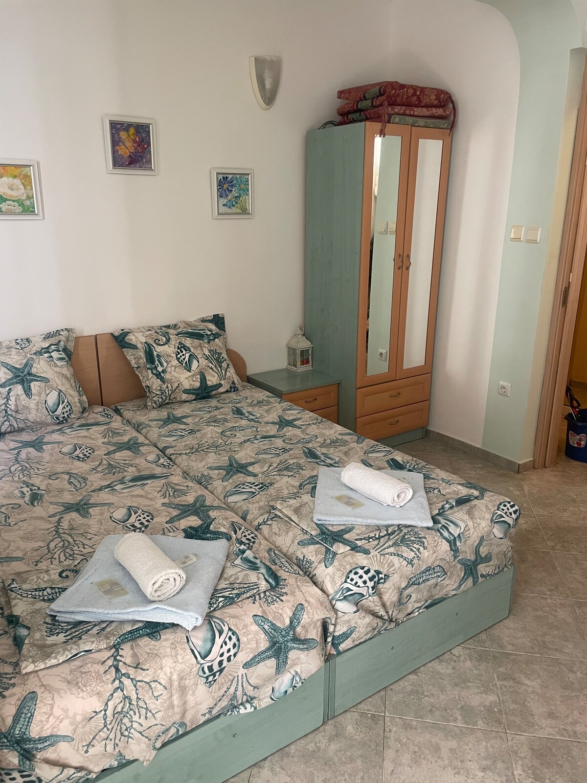 Аренда квартир у моря в Болгарии — лучшие предложения ждут вас! Уютные и светлые номера в гостевом доме в Равде: две односпальные кровати, кондиционер, телевизор, рабочая зона и балкон с видом на зелёный двор. Всего 15 минут пешком до моря! Без посредников и лишних хлопот — выбирайте комфортное жильё для отдыха всей семьёй или компанией друзей. Мы принимаем гостей с животными! Ваши питомцы могут отдыхать вместе с вами.