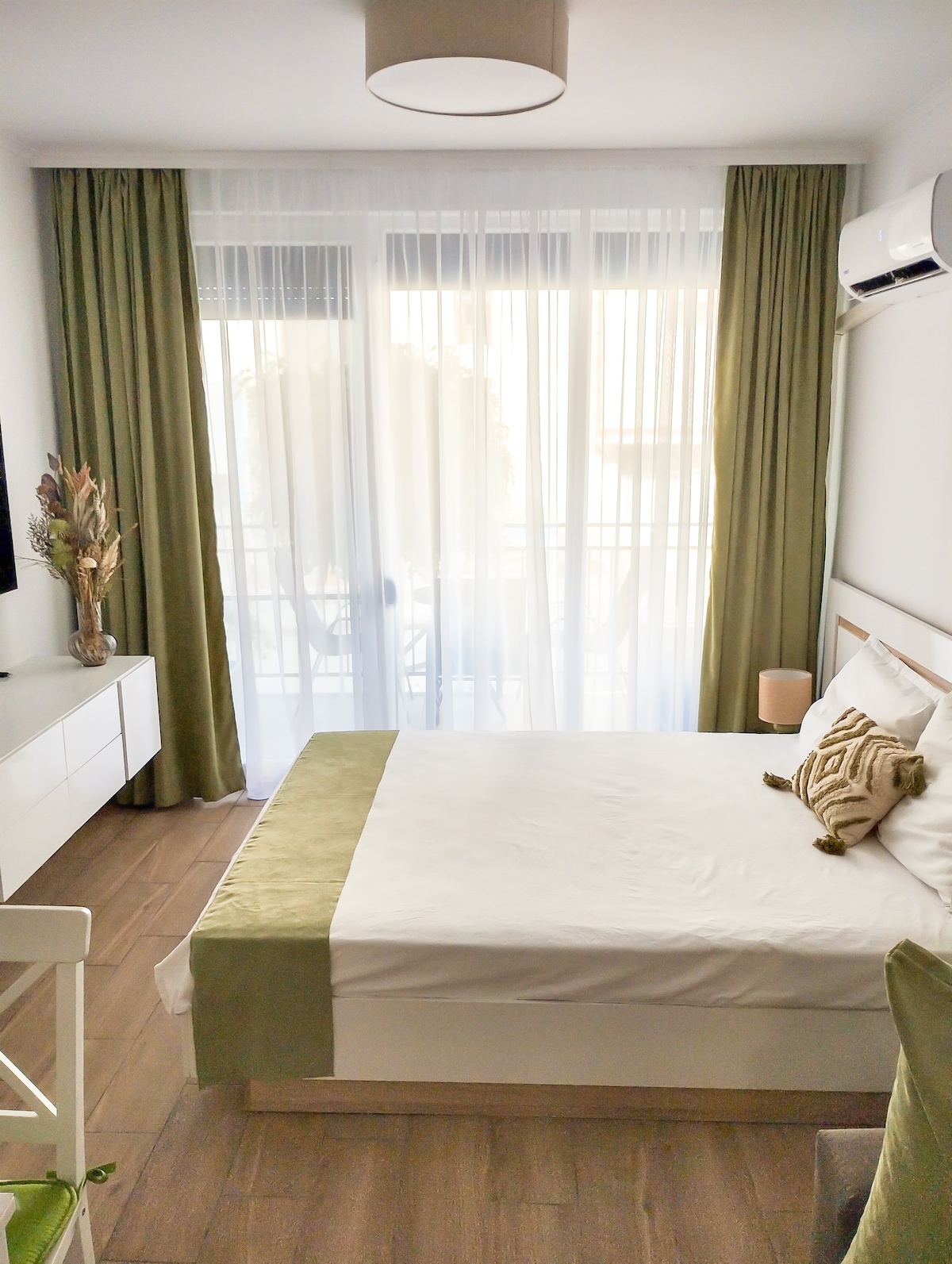 Our cozy Studio Serenity is perfect retreat for couples or families with up to two children. Located in a peaceful area of Santa Marina, just steps from the beach and near a large pool, it offers a serene escape. Enjoy a private terrace, beautifully landscaped surroundings, and easy access to Sozopol, only 2 km away. Santa Marina offers 5 pools, kids' pools, restaurants, a playground, wellness centers, tennis courts, and convenient transport within the complex and to nearby beaches.