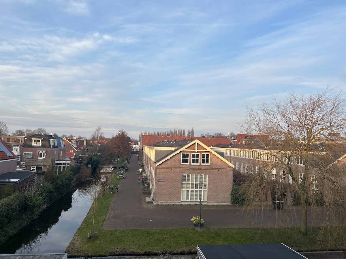 Nice, new and private. A fully equipped ground-floor studio in a 150 year old riverside house. It has everything to make your stay comfortable. Nice living with a view on the Spaarne River, lovely boxspring bed, and a large bathroom with a rain shower. It's a 15-minute walk along the river to the city center, and you can do it in 5 minutes by bikes we provide. 20 min to Amsterdam by bus or train, 20 min to the beach bus/train, bike 30 min. It is 40 minutes from the airport.