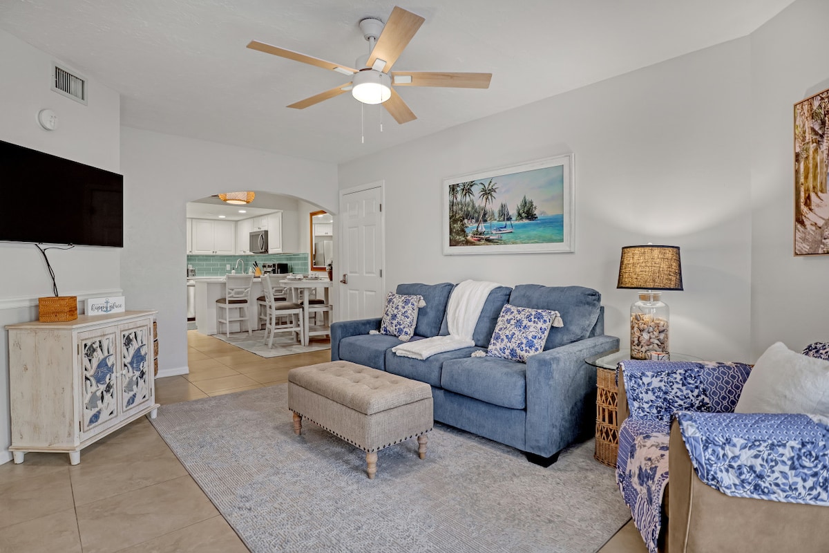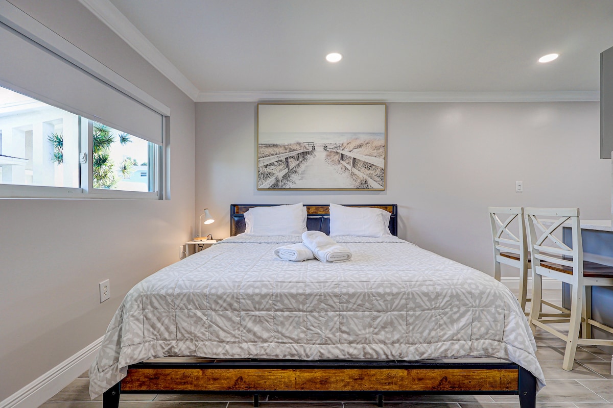 Wake up to shimmering water views and unwind by the pool-all within steps of downtown Melbourne's dining, shopping and waterfront charm. Paddle board / kayak rentals steps away. Dip your toes in the ocean within minutes. 1BR/1BA sleeps 4. The kitchen/bar are stocked with all of the essentials, and the living room offers a cozy spot to relax with water views. Private balcony great for nature watching. Pool, open parking, wifi , safe, cable, and laundry available for your comfort.