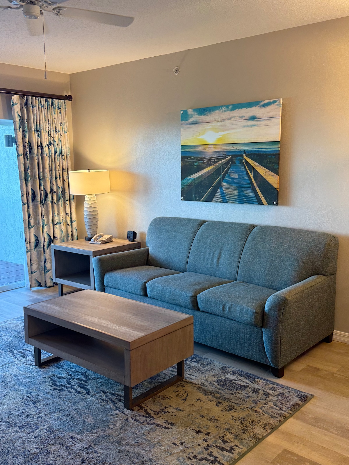Great beachside resort on Florida’s Space Coast! Enjoy a 1200+ SF, 2BD/2BA villa at Holiday Inn’s Cape Canaveral Beach Resort with access to onsite water park consisting of pools, water slide, lazy river, hot tub, and splash zone. Take advantage of the putt putt course, basketball, tennis courts, workout room, children’s play area with activity center, or even catch a movie with the family in the onsite theater. The beach is a short walk or brief shuttle ride from the main resort building.