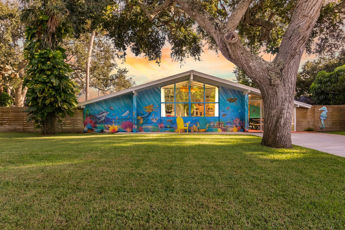 ❤️All you have to do is unpack & relax!❤️ Treat Your family to An Airbnb Top 5%! Imagine the children laughing with delight when they are greeted at their vacation home by a whimsical mural. Wait until you see the huge backyard...there’s so much fun you’ll feel like a kid again! *Use the crosswalk & stroll to the beach * Jump in the pool * Play mini-golf * Relax in the hammocks * Cook s’mores by the fire * Enjoy Kayaks & Paddle Boards * Surf & Body Board *Play games *Watch an outdoor movie
