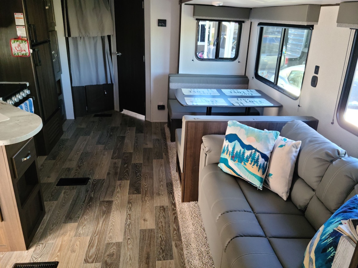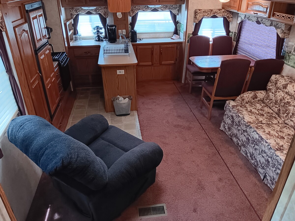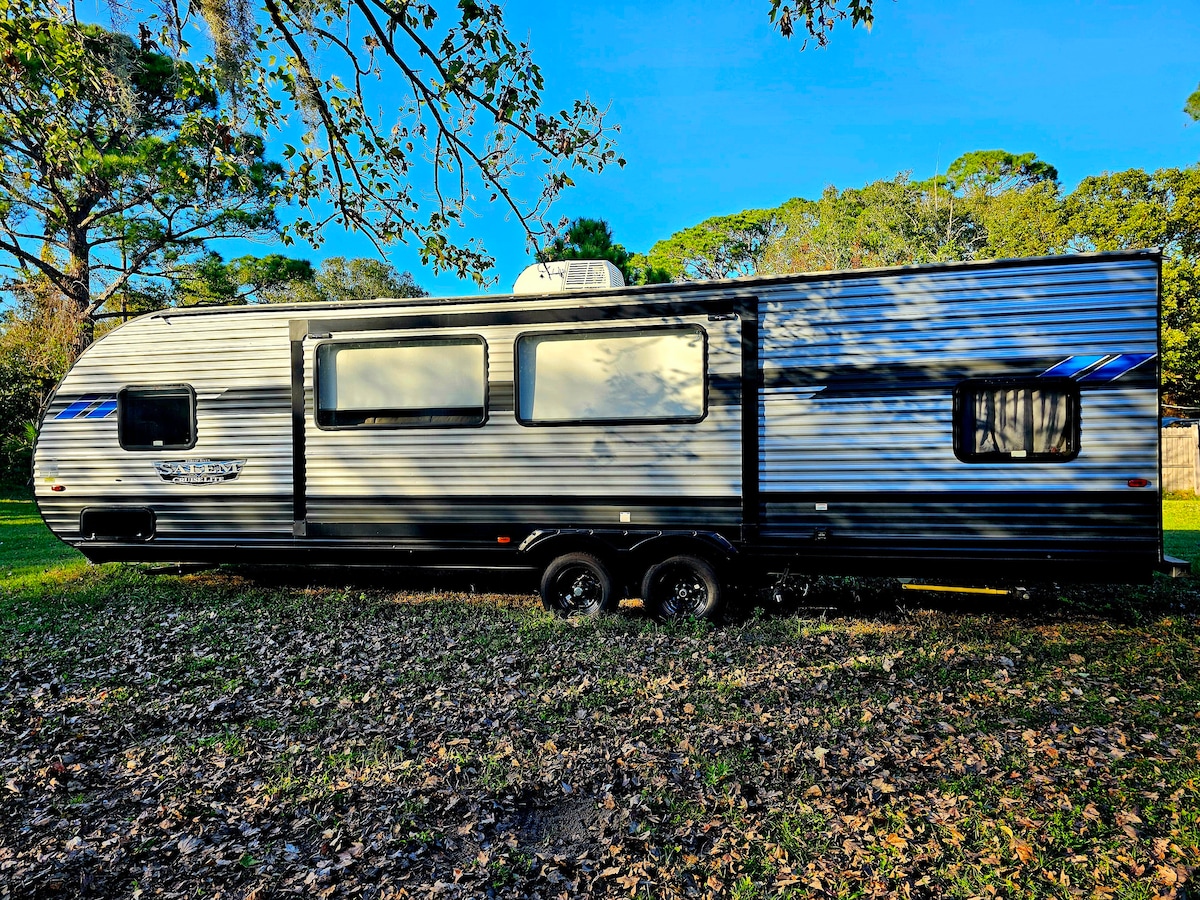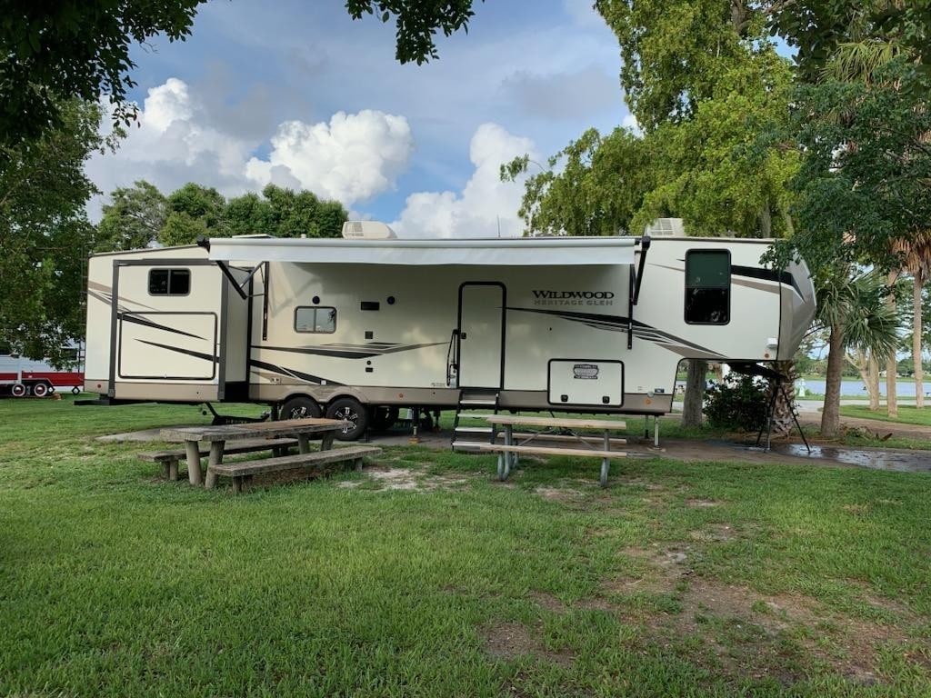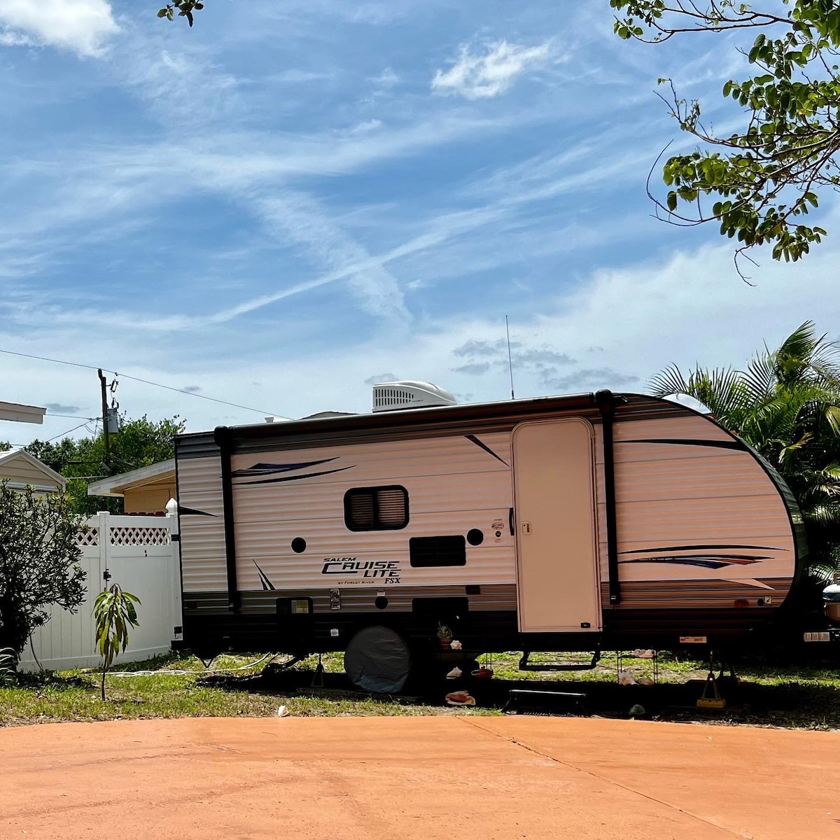We love to have guests at our home! We have a nice, fully functioning 5th Wheel with conditioning/heat, a stove, oven, refrigerator and access to laundry. The space provides two bedrooms: a master queen separate from a 2-bed bunk room. Additional sleeping spaces include table and couch conversion. If you like fishing, we have space to park your boat, and you can charge it! There is great bass fishing in the nearby town of Fellsmere. Our driveway is 55ft long.