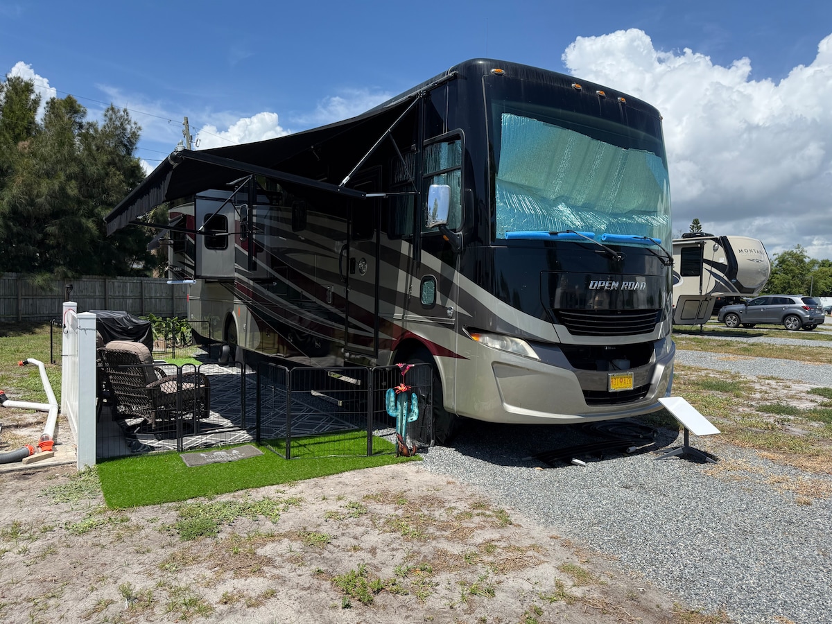 Modern RV with free WiFi parked in a private home close to shoppings, restaurants and entertainments of Palm Bay and Melbourne: RV located to 4 minutes from Publix, Chipotle, Wendy's, PolloTropical, Crafty Crab, Longhorn Steakhouse, Marshall's, Kohl's, Target. It’s 6 minutes from Walmart, Chick-fil-A, Hooters, IHOP, Einstein Bros. It’s 12 minutes from the airport of Melbourne and 18 minutes to Indiatlantic Beach.