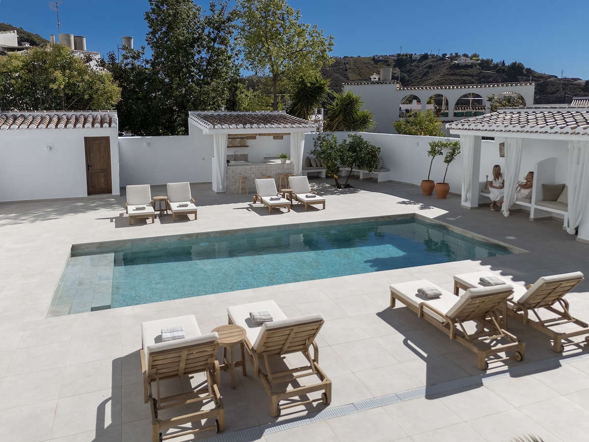 READ FULL DESCRIPTION. Wake up to views of the Sierra Nevada Mountains and the Lecrín Valley from your private terrace. This suite is located on the top floor of our farmhouse, with separate entrance. The suite is designed for your maximum comfort, with a bedroom with a 180x190 cm double bed, a private bathroom with a shower, a private living-dining room with a sofa bed, and a kitchenette (for storing and heating food). It is equipped with underfloor heating and ceiling fans.