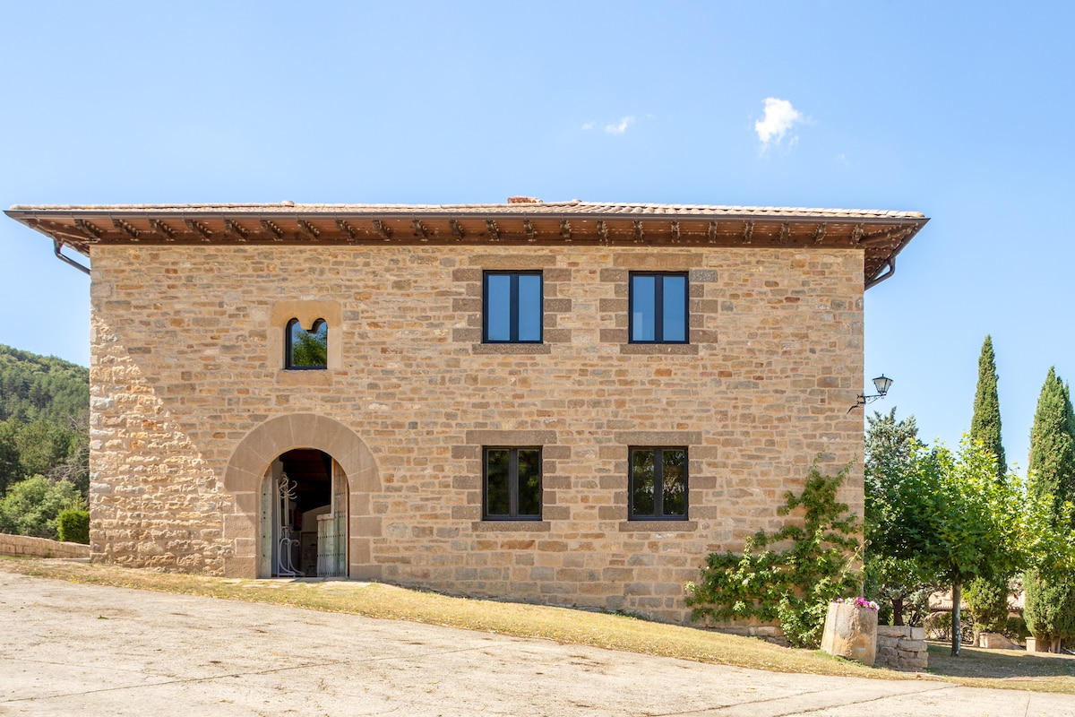 Castillo en Los Pirineos de Aragón (España) recientemente rehabilitado en un entorno natural agrícola y ganadero. Rutas de llano y montaña, senderos a pie y en bicicleta. Las casas de turismo rural –del Aceite, el Pan y el vino- se encuentran en la fortaleza de finales del siglo XV en un recinto con jardines en medio de la vida tranquila del campo y con un parque infantil.