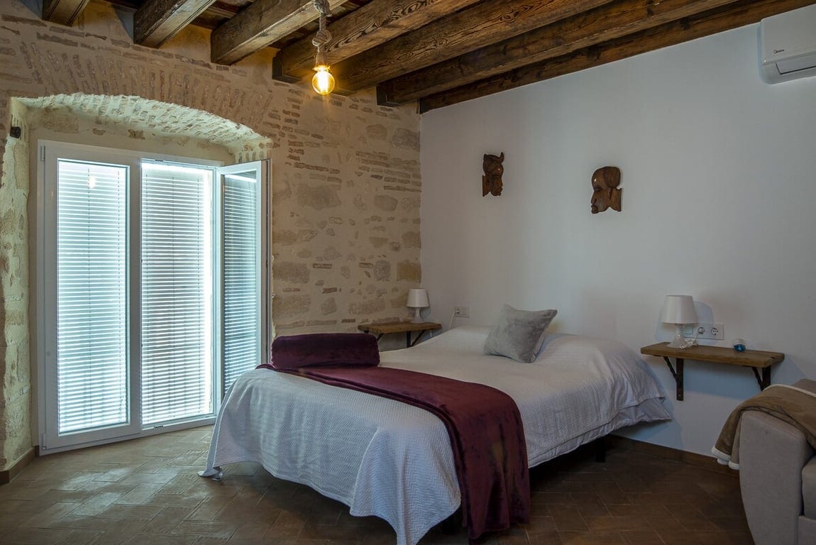 Alójate en una masía fortificada única. Un castillo con piscina, zona de ocio y un enorme patio central. La casa 15 está completamente equipada y renovada. Con terraza privada, bicicletas y aire acondicionado en toda la casa. Cuenta con una habitación doble pero también con un amplio y confortable sofá cama en el salón. Situada en el corazón del Pinar de San Juan, un enclave privilegiado, en la villa de Altura y a 2 km de Segorbe, la capital de la comarca del Alto Palancia en Castellón.