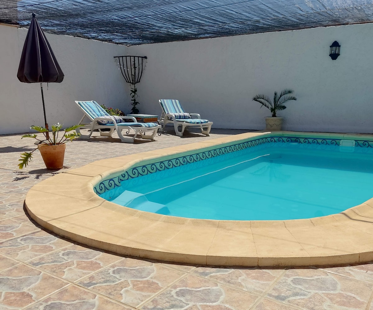Casa acogedora en un tranquilo y bonito entorno rural de montaña en Granada. Ubicada en un pequeño pueblo junto al Parque Natural de Sierra Nevada, a 25 min de Granada, 20 min de La Alpujarra y 25 min de la playa. La casa tiene dos plantas y un patio exterior con pequeña piscina, exclusivo para ti. Planta de abajo: distribución abierta con salón, comedor, cocina, pequeño aseo y patio. Planta superior: dormitorios y baño completo. Rutas de senderismo a 5 min a pie desde el alojamiento.