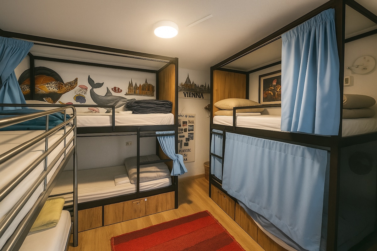 Cama en dormitorio amplio con luz natural. Literas de 2 metros de largo. Cada cama tiene su propia luz, enchufe, toma USB y balda. Cada litera tiene una cortina estilo "blackout" para una mayor privacidad, además de un amplio cajón individual bajo la cama que se puede cerrar con candado. (Alquilable en recepción). Disponen de: Aire acondicionado Calefacción WIFI de alta velocidad Baños y duchas compartidos en el pasillo Mantas Sábanas Toallas (extra con suplemento y bajo petición) Perchero