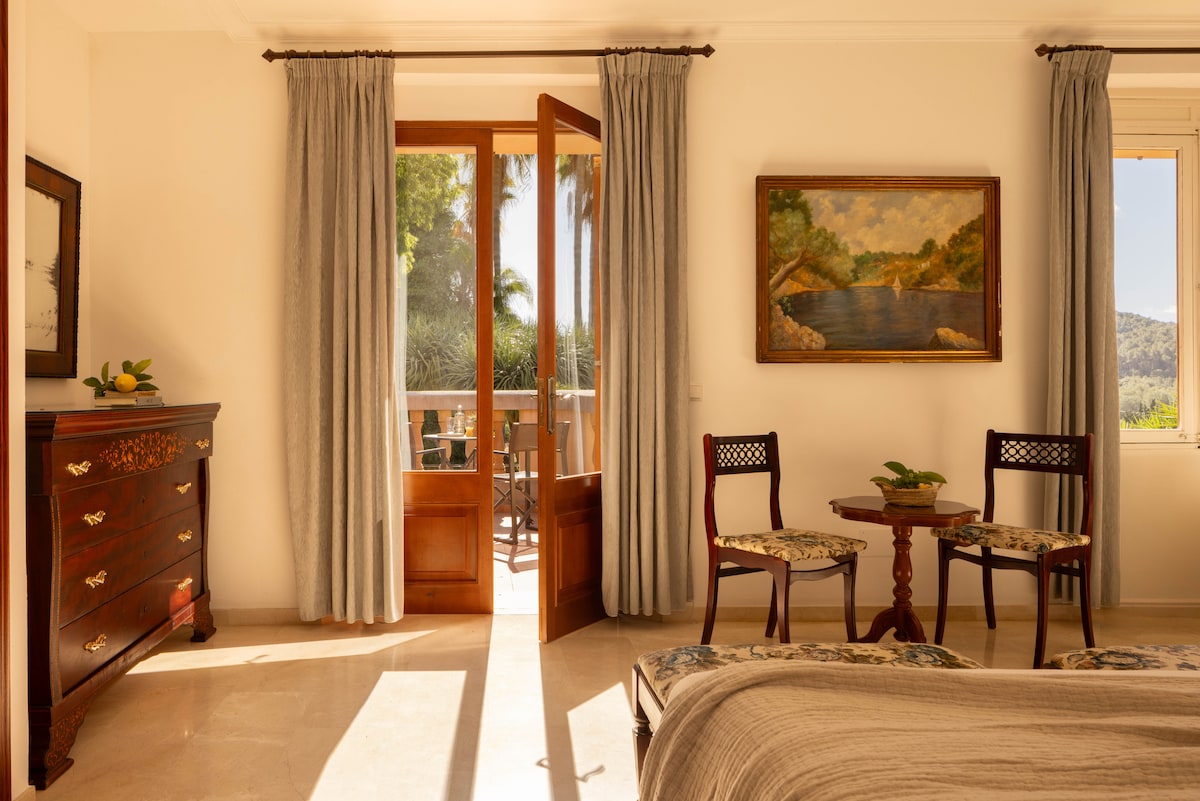 Por favor tenga en cuenta que las fotos representan el tipo de habitación reservado pero todas las habitaciones del agroturismo son distintas al tratarse de una antigua posesión del sigo XVIII. La habitación Doble Superior es amplia, cómoda, con un estilo tradicional. Dispone de un baño completo, suelos de mármol y una amplia terraza. Maravíllate con el encanto de esta habitación y siente la esencia de la Serra de Tramuntana en cada uno de sus rincones.