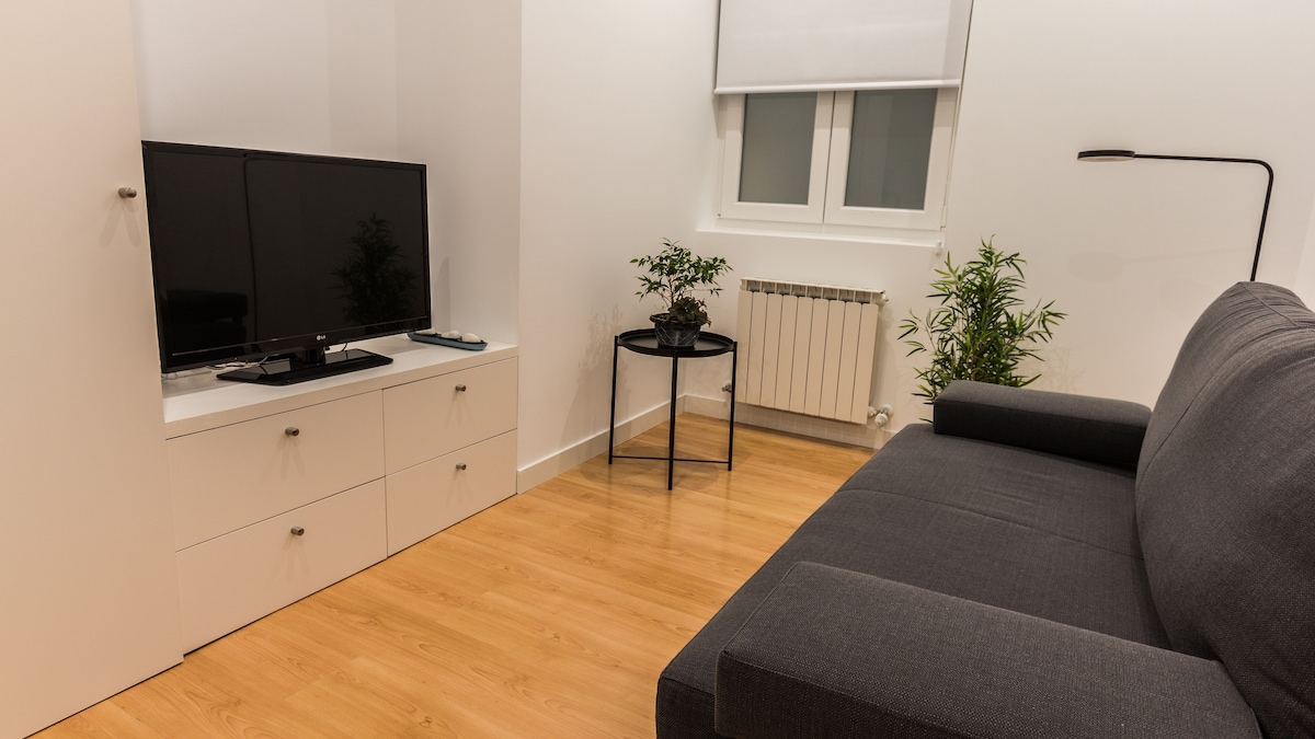 Our cozy refurbished studio is just 100 meters from Puerta del Sol. The studio is on fourth floor (with elevator), It is very sunny and quiet. You will enjoy a full furnished apartment in the most COOLEST and tourist-centric neighbourhood in MADRID. Diaphanous, very comfortable. With a / c, heating and stove. Exclusive use bathroom bathroom. Decorated with care by its owners with objects and antique furniture. it is the erfect place if you are looking for a place to stay for a week or more