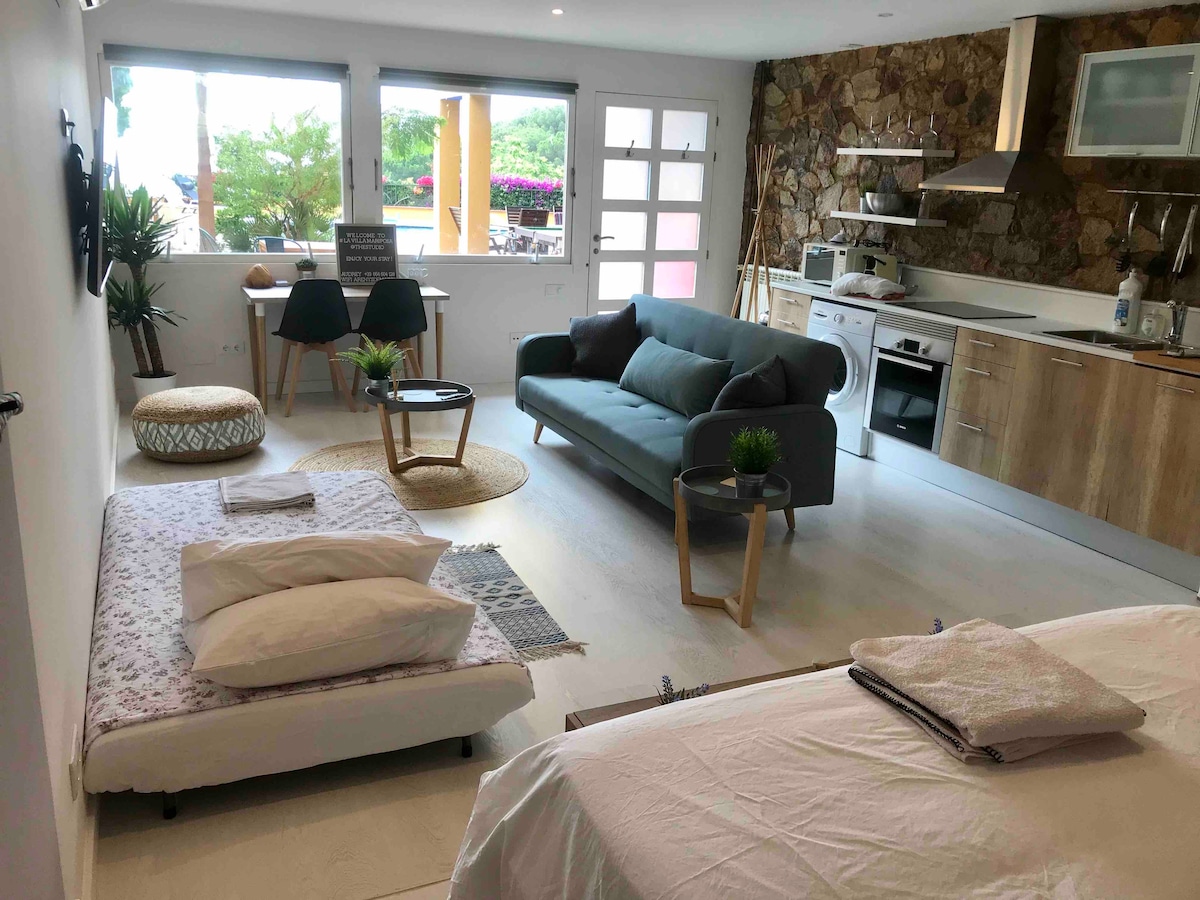 Unique loft with private kitchen and bathroom, and with right to the pool and garden. It's located in a quiet residential area, near la Seu d'Urgell (3km) and only 30 min of Andorra and la Cerdanya. Ideal for couples, families with kids and for lovers of the nature and animals. Activities of interest: Trekking, BTT, kayak, rafting, natural pools (20 min from the loft) and much more! We are waiting for you :)