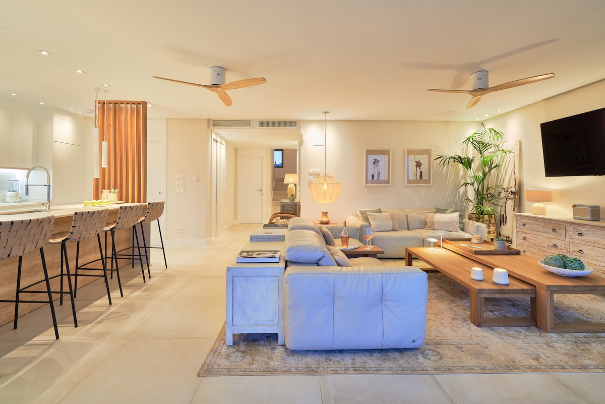 海滩边的Aria |豪华、泳池、免费健身房和桑拿