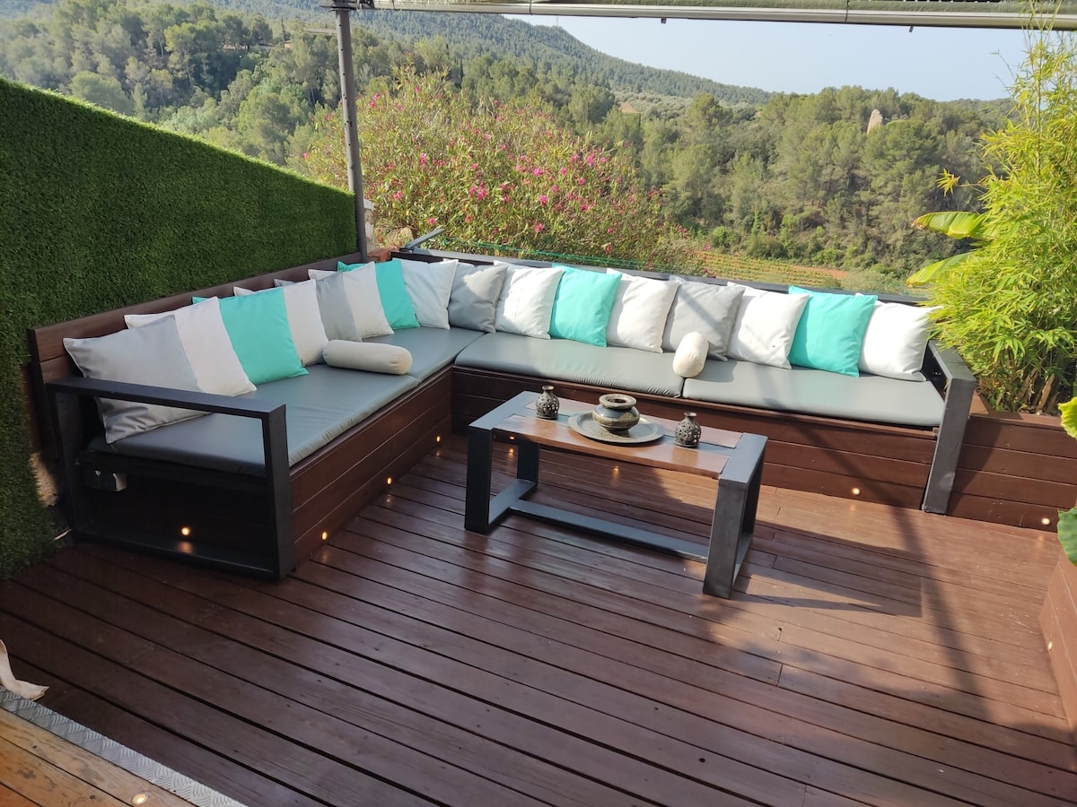 Apartamento con mucha luz natural, está situado en la montaña por lo que se puede acceder al Parque Natural del Corredor a pie A 5-10 minutos en coche de todos los servicios Situado a 25 minutos de Barcelona y 30 minutos de la Costa Brava El apartamento es anexo y se sitúa en la parte baja de la vivienda, se comparte la entrada de la calle. Son dos viviendas independientes. El apartamento tiene acceso privado a la piscina, el jardín y la sauna Para conocer más Mataró visita visitmataro