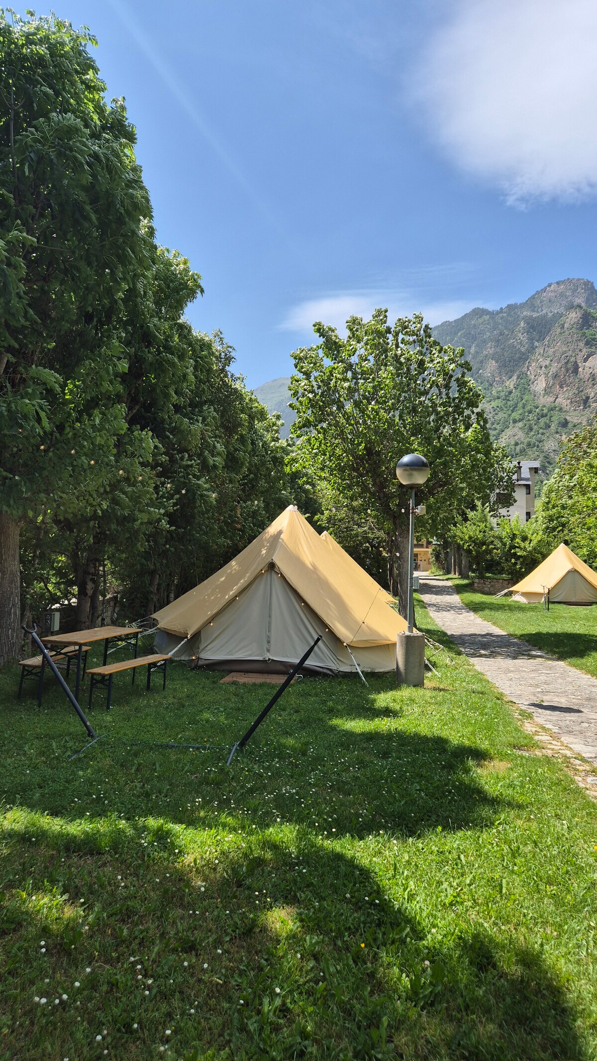 Vive una experiencia única de glamping en nuestra Tienda Bell, ubicada en el corazón de Espot, cerca del Parque Nacional de Aigüestortes y Estany de Sant Maurici. Esta espaciosa tienda tipo campana combina comodidad y naturaleza, equipada con una cama doble acogedora y un ambiente rústico que te invita a desconectar y relajarte. Características: Cama doble con ropa de cama incluida Espacio interior amplio y ventilado Decoración acogedora de estilo natural Acceso a baños y duchas compartidas