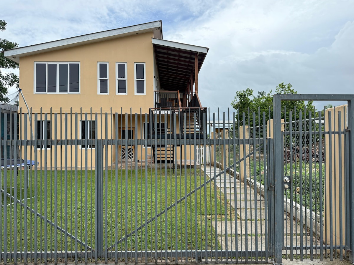 Experience tranquility in our charming yellow cottage near Spanish Lookout, set in a lush, jungle-like setting. Perfect for families or groups, the cottage features a fully equipped kitchen and comfortably accommodates up to 6 guests. The master bedroom boasts a king-size bed, while the second bedroom includes a bunk bed with queen-size mattresses. With modern amenities including laundry facilities, it's an ideal retreat for those seeking both comfort and serenity in a beautiful natural space.