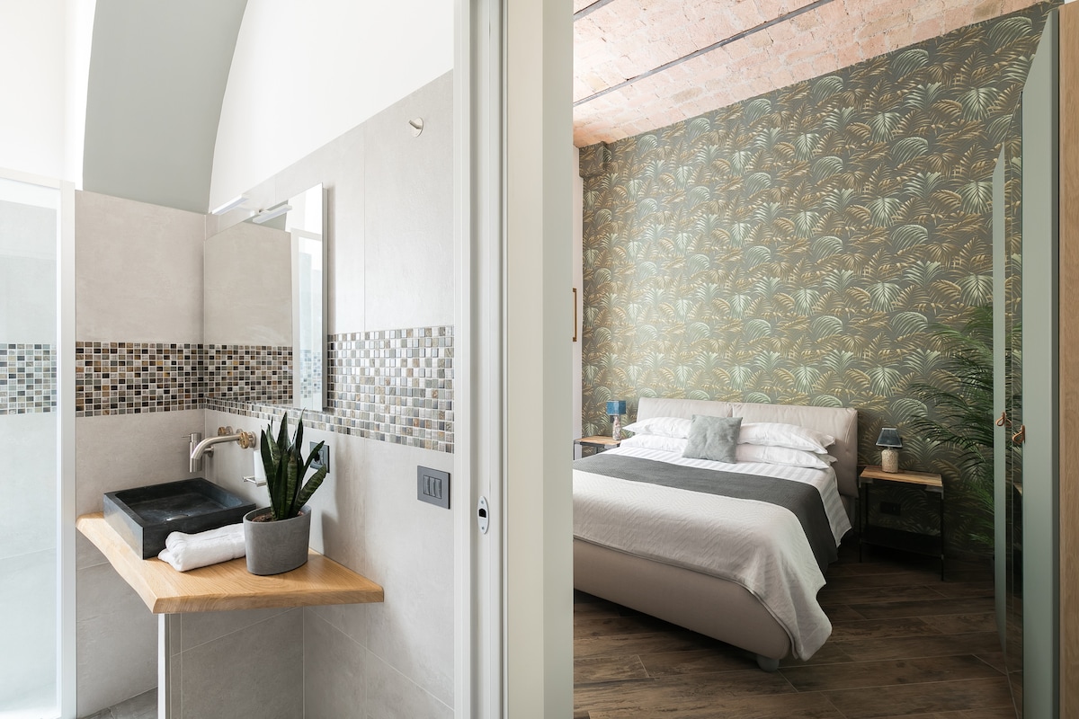 Meravigliosa camera matrimoniale in una Guesthouse di tre camere post al primo piano di un edificio d'epoca, finemente arredata. A disposizione degli ospiti: bagno con doccia, aria condizionata e riscaldamento autonomo, cassaforte, minifrigo, asciugacapelli, connessioni internet wi-fi, smart tv; Netflix e kit bollitore