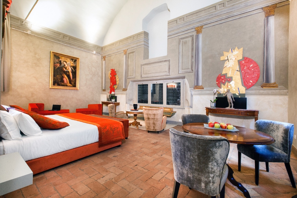 Il Relais Santa Caterina della Rosa sorge all'interno di un palazzetto del 16 secolo, ex convento e sede storica del Conservatorio di Santa Caterina. La Suite Superior è una location unica, 90 mq, totalmente affrescata, le sue finestre affacciano direttamente nella navata della chiesa sottostante. Dotata di wi-fi, smart tv, frigo bar e cantina dei vini, climatizzata è la soluzione ideale per famiglie o piccoli gruppi che scelgono un posto unico, in pieno centro storico per il loro soggiorno.
