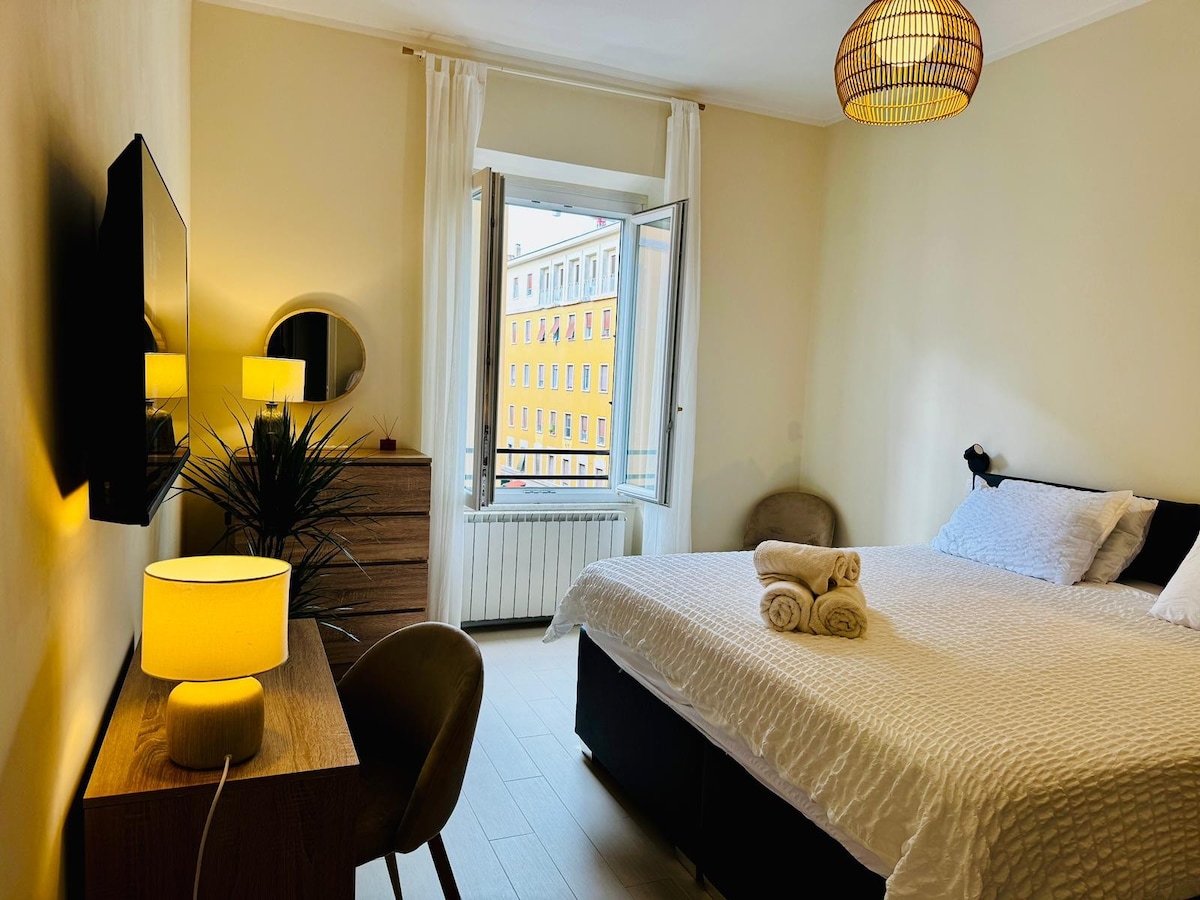 Appartamento comodo ed elegante perfetto per esplorare Roma. Ottimi collegamenti con metro e treno: Colosseo a pochi minuti, Vaticano in soli 10 min. Aeroporto raggiungibile in treno. Luminosissimo, con una bella terrazza, è ideale anche per soggiorni lunghi, per chi vuole scoprire Roma in modo autentico. Sconto per chi resta almeno 7 notti. L’host Anna Maria sarà felice di darti consigli sulla città: cosa vedere, dove mangiare o fare shopping. Una base perfetta a Roma.
