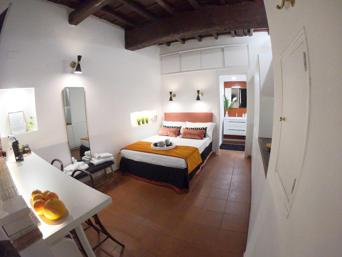 It's a gem... and it will be your NEST OF LOVE FEW METERS FROM TREVI'S FOUNTAIN AND SPANISH STEPS. Romantic and delightful suite in a typical Roman style with a delicious double bedroom, a small living room with sofa bed and TV. Bathroom with shower and full equipped kitchen. A true oasis of peace within the heart of historic center of Rome. UNLIMITED FREE WIFI, NETFLIX , ALEXA , AIR CONDITIONING, SOUNDPROOFED WINDOW, WASHING MACHINE AUTONOMOUS HEATING USER FRIENDLY COMPIUTER WORK PLACE