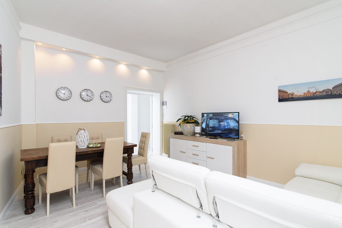 Luxurious 130 sqm apartment, newly renovated, combining the charm of modern design with maximum comfort, located in the Prati district, perfect for discovering the city: Vatican City: 10-minute walk. Castel Sant’Angelo: 15-minute walk. Piazza del Popolo and Villa Borghese: a 20-minute walk. Piazza di Spagna and its famous shopping streets, such as Via del Corso and Via Condotti, are about a 25-minute walk. Lepanto Metro Station: 5-minute walk.
