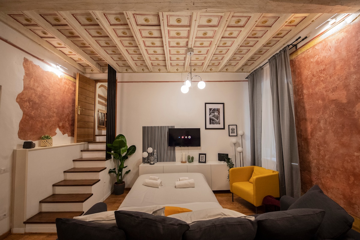 The flat is located in ViaPaola43, a charming historic palace recently renovated and in a perfect location. Just less than 300 meters from Castel Sant’Angelo, and 750 meters from the Vatican and Piazza Navona, this amazing place combines elegant aesthetics with comfort and modern amenities. The icing on the cake? The amazing terrace with a breathtaking view of Castel Sant'Angelo, you will definitely love it!